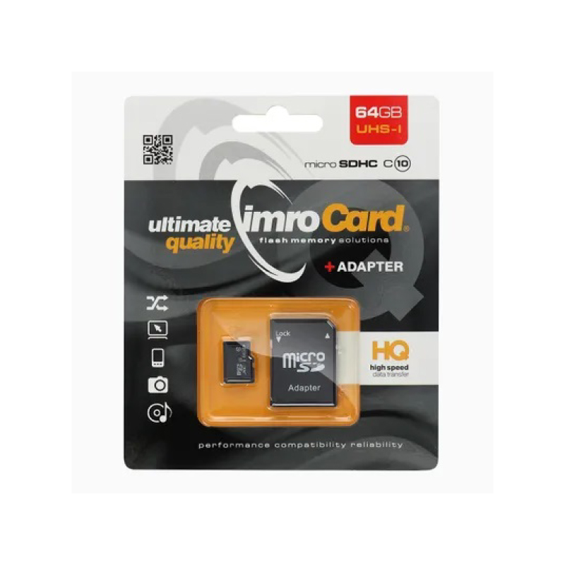 CARTA MEMORIA IMRO microSDHC 64GB UHS con adattatore SD CLASSE 10 UHS