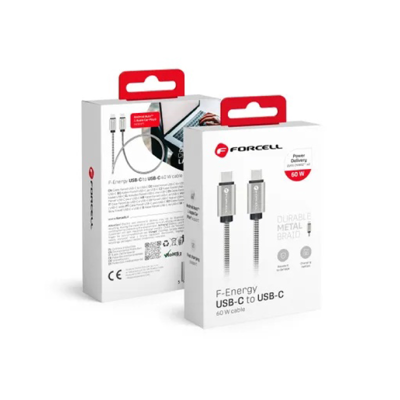 FORCELL F-ENERGY Cavo metallico C237 da tipo C a tipo C PD QC4.0 3A 60W 1 m argento